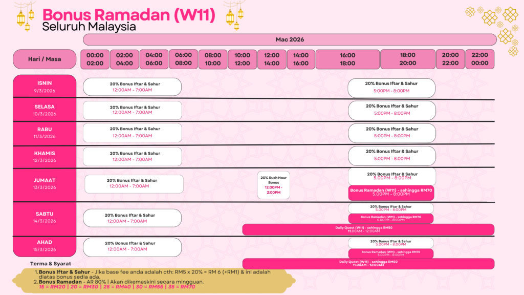Sepanjang bulan Ramadan Raya ini, setiap perjalanan anda lebih bermakna dengan Bonus Ramadan Raya 2026 yang tersedia untuk anda!