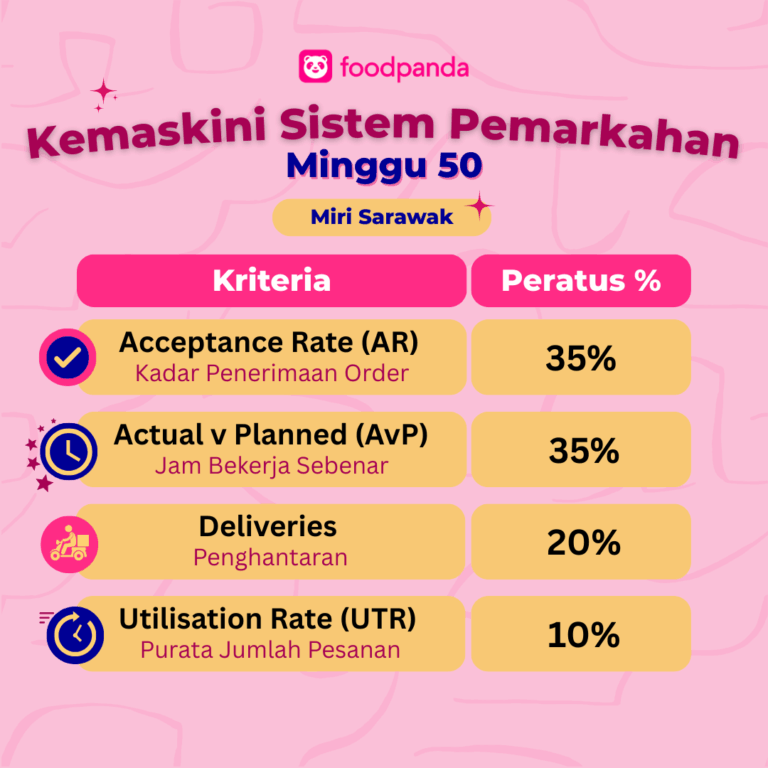 Sistem pemarkahan adalah penting untuk penunggang foodpanda kerana prestasi kerja anda akan menentukan batch dan proses pemilihan jadual kerja anda