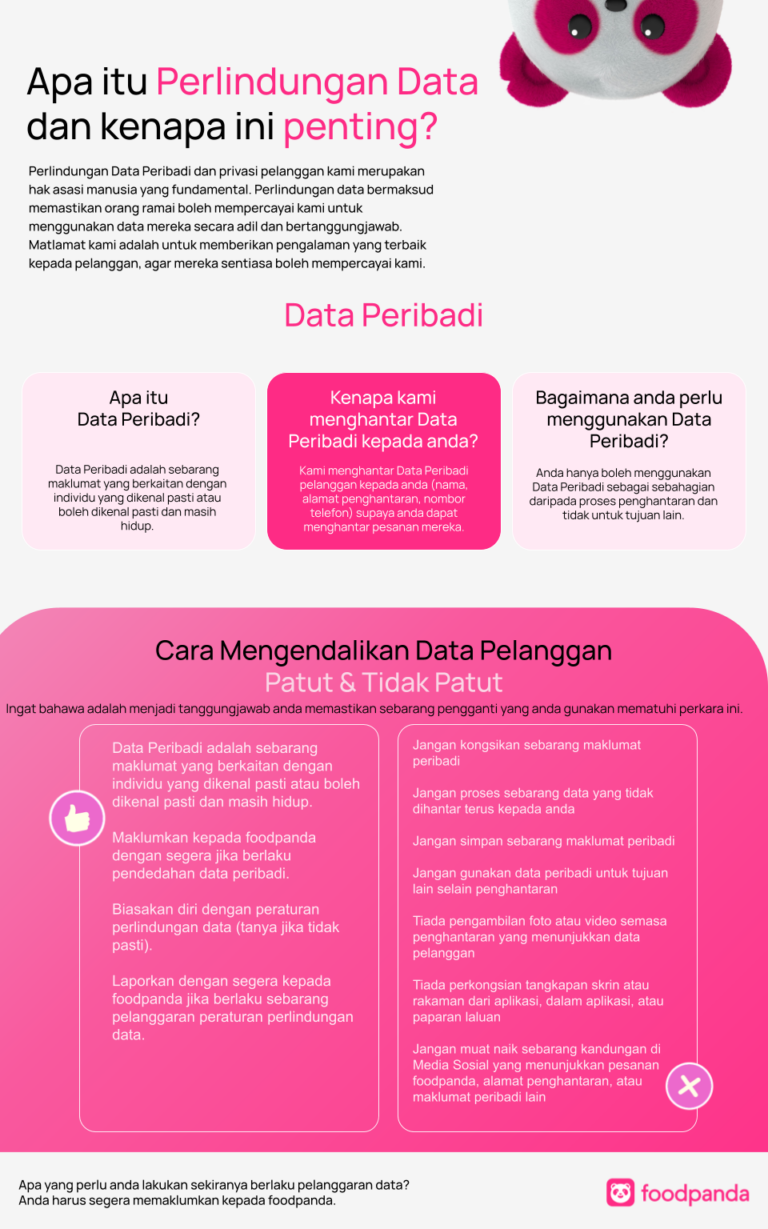 •Jika penunggang foodpanda gagal menukar beg dalam tempoh yang ditetapkan oleh foodpanda, sama ada atas sebab yang berkaitan atau tidak berkaitan dengan pematuhan undang-undang, tindakan sewajarnya akan diambil.