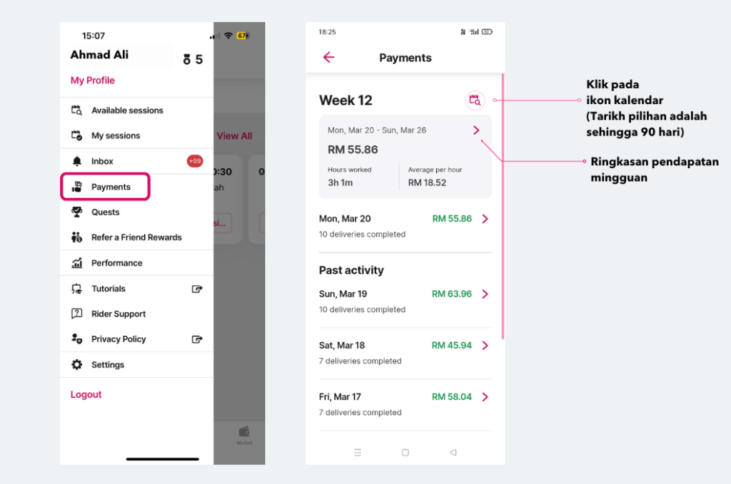 Akan datang bulan November 2023 ini tab “penyata pendapatan” (sentiasa semak inbox di aplikasi pandarider). Anda kini boleh lihat penyata pendapatan yang anda terima dengan lebih terperinci mengikut langkah-langkah dibawah;